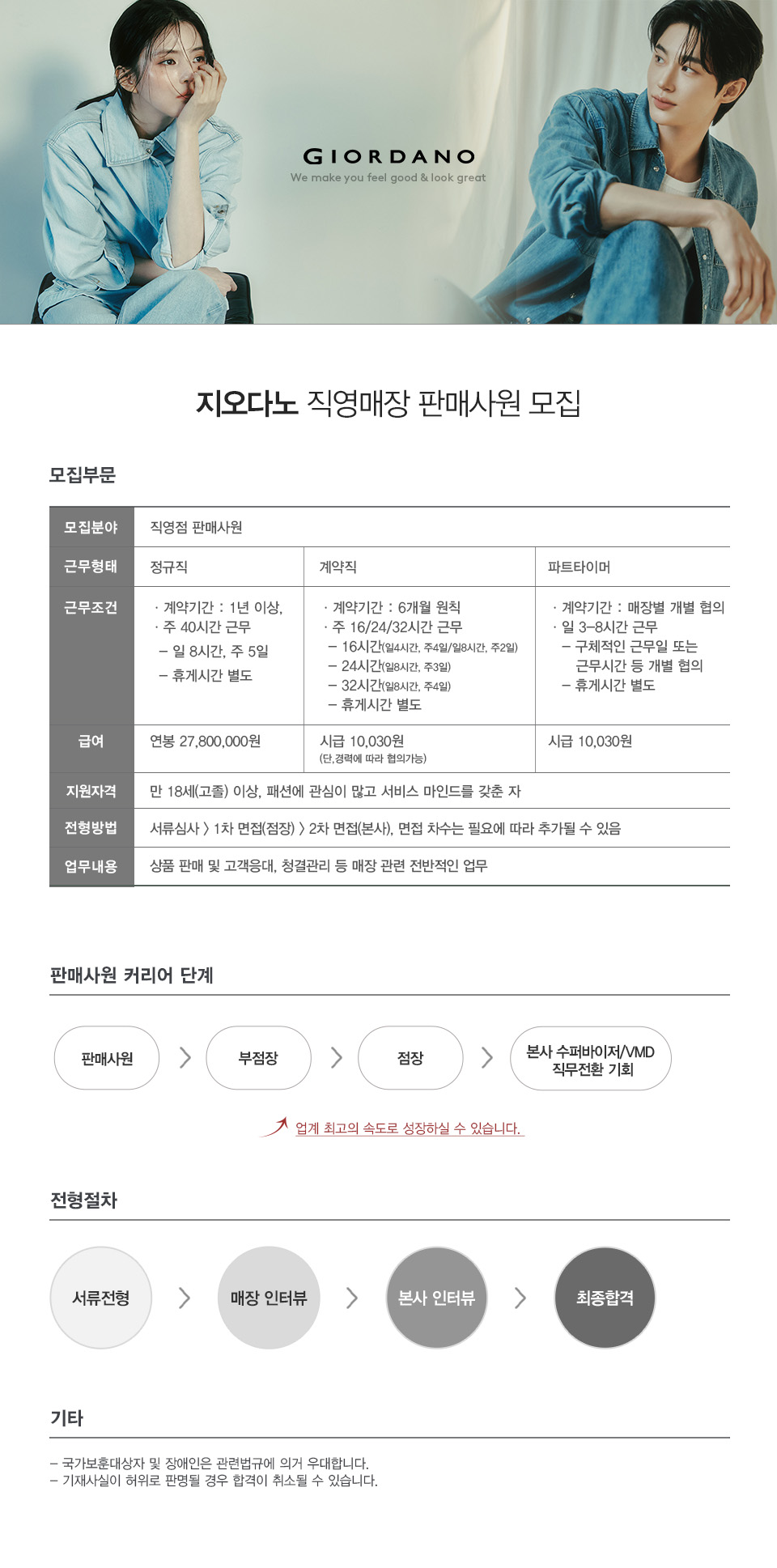 지오다노의 젊음과 함께 성장할 인재를 모집합니다!