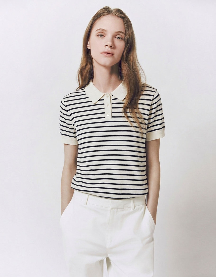 NEW 스트라이프 폴로넥 반팔 니트 스웨터