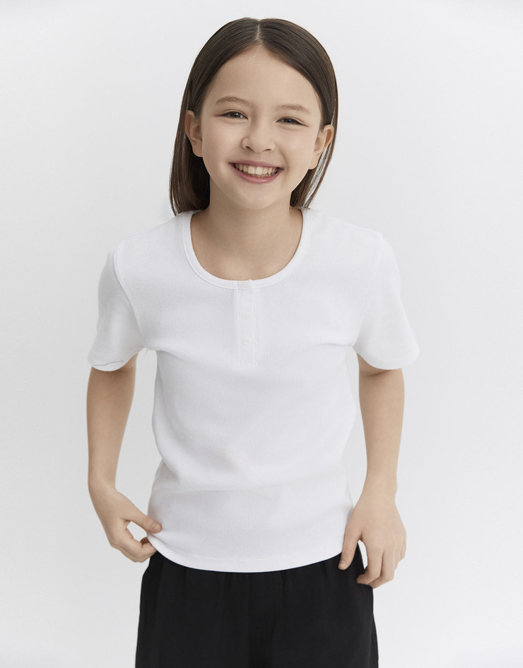 NEW 주니어 립 헨리넥 반팔 티셔츠(여아)
