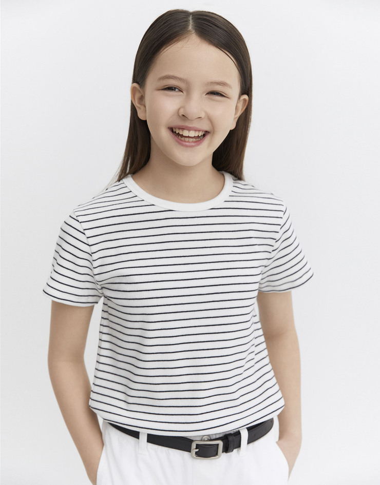 NEW 주니어 립 스트라이프 반팔 티셔츠(여아)