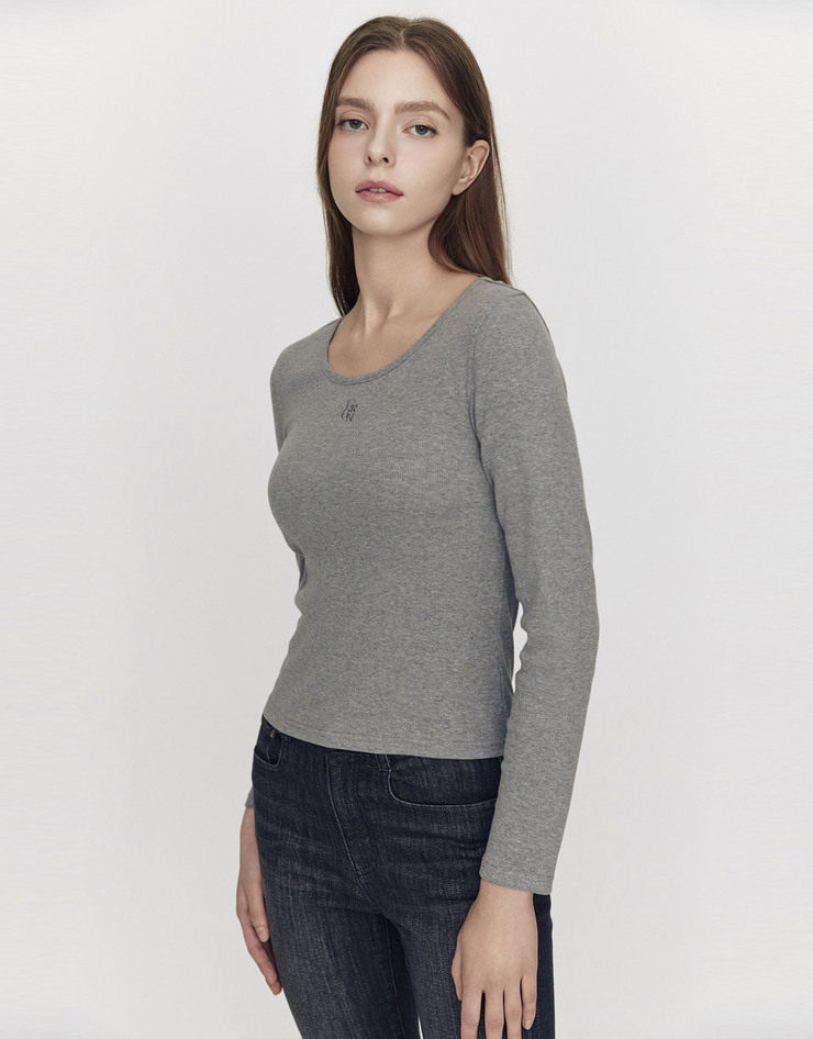 코튼 저지 스쿱넥 긴팔 티셔츠