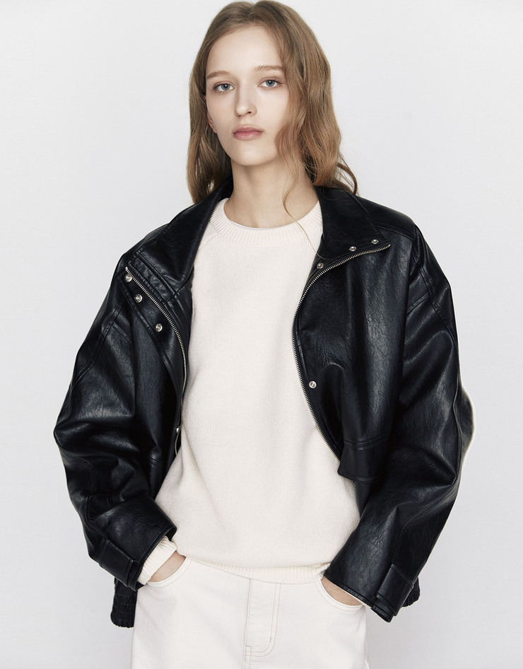 NEW 레더 오버핏 블루종 자켓