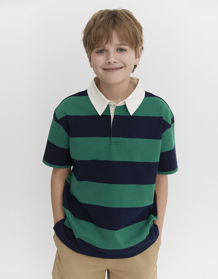 NEW 주니어 스트라이프 럭비 폴로 반팔 티셔츠