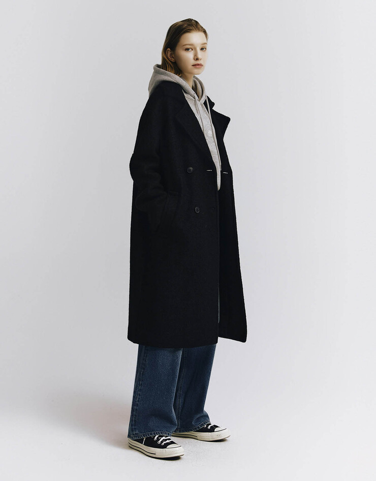 울 더블 롱코트