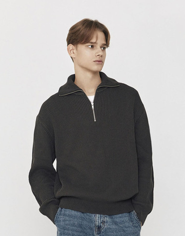 스티치 목넥 하프집 니트 스웨터