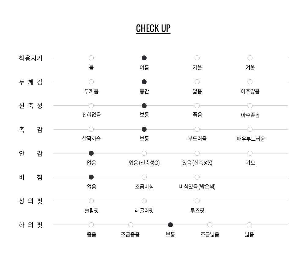 일반 스판 대비 편안한 착용감과 안정적인 핏을 유지합니다.