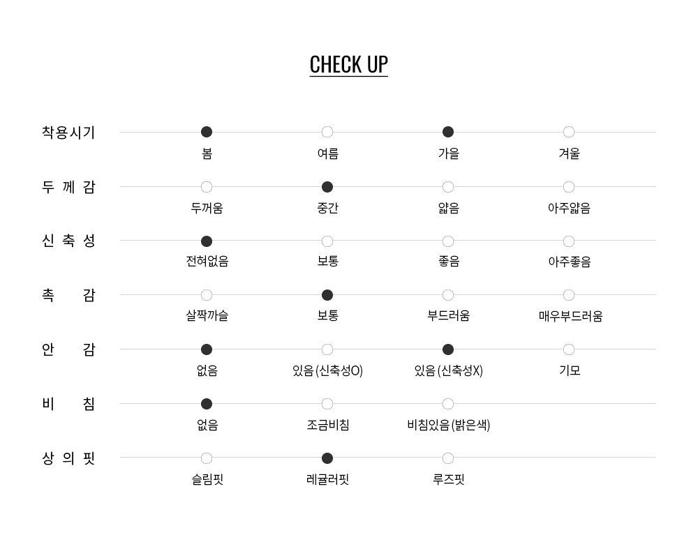 적당히 붙는 레귤러한 핏으로 포멀한 착장과 캐주얼한 착장 모두 잘 어울리는 제품입니다.