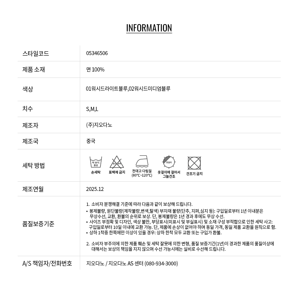 • 교환 진행시 배송비 5,000원 주문자 성함으로 입금 부탁드립니다(신한은행:267-05-028523 (주)지오다노)