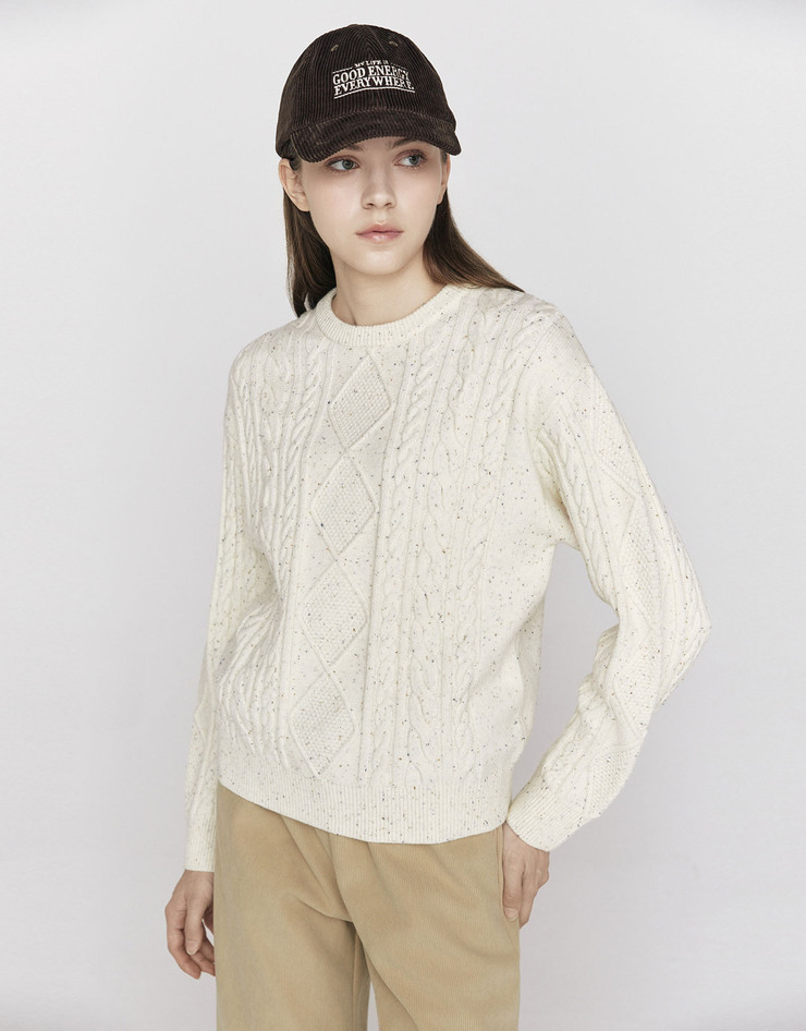 여성 28수 2합 7GG 넵사 케이블 크루넥 스웨터입니다.