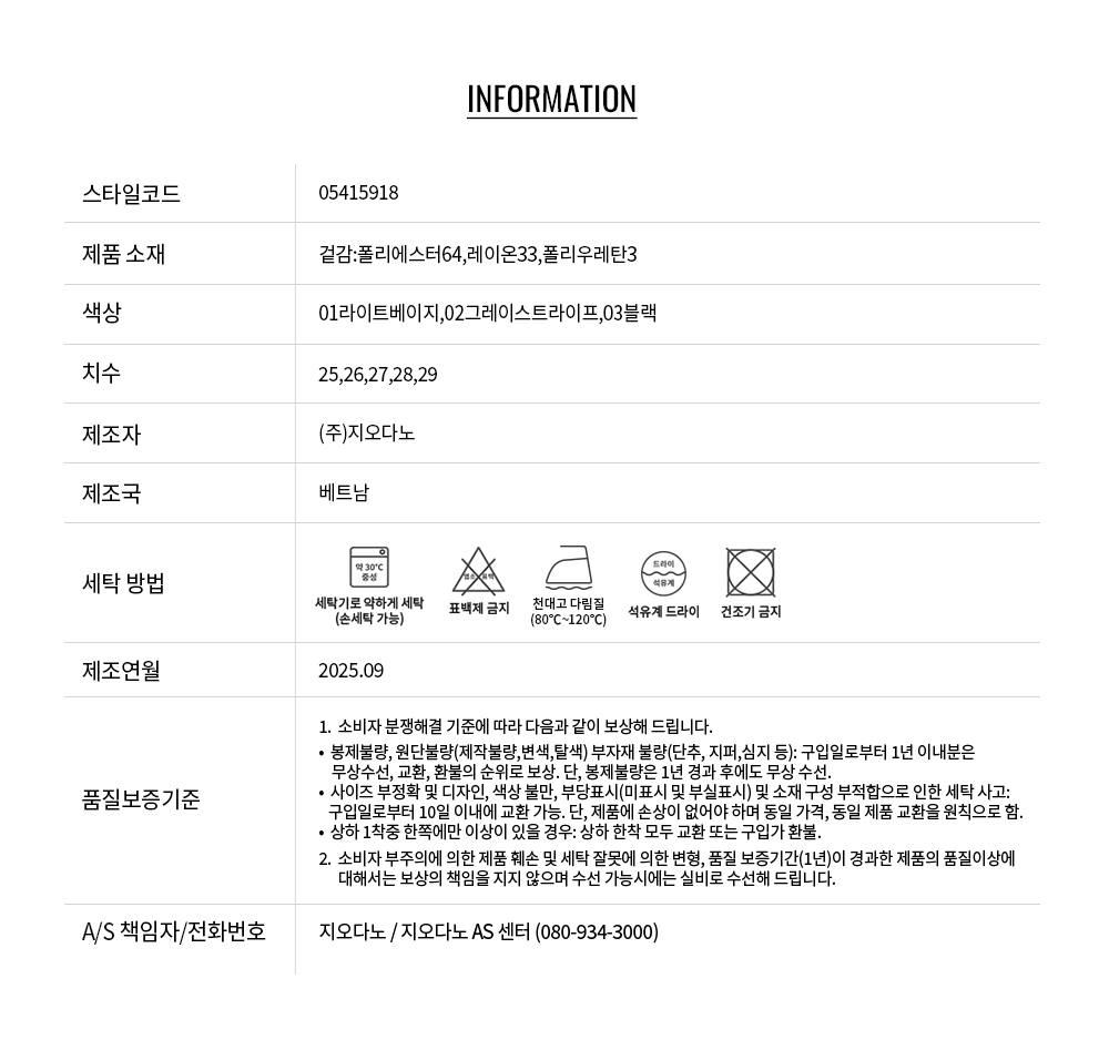 • 교환 진행시 배송비 5,000원 주문자 성함으로 입금 부탁드립니다(신한은행:267-05-028523 (주)지오다노)