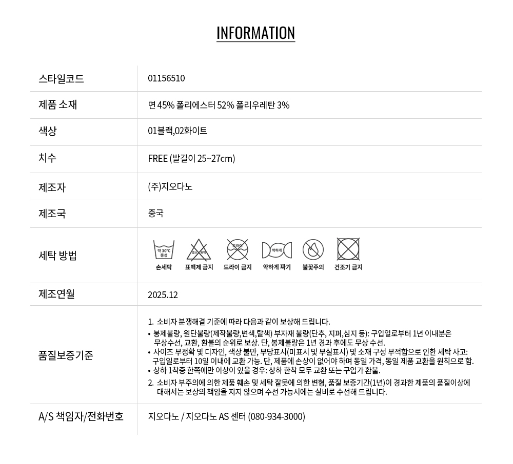 적당한 두께감과 안정적인 신축성을 갖춘 데일리 양말입니다.