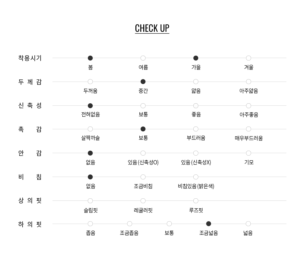 **데님 원단 특성 상 컬러 별로 상세 스펙 차이가 있을 수 있습니다.
