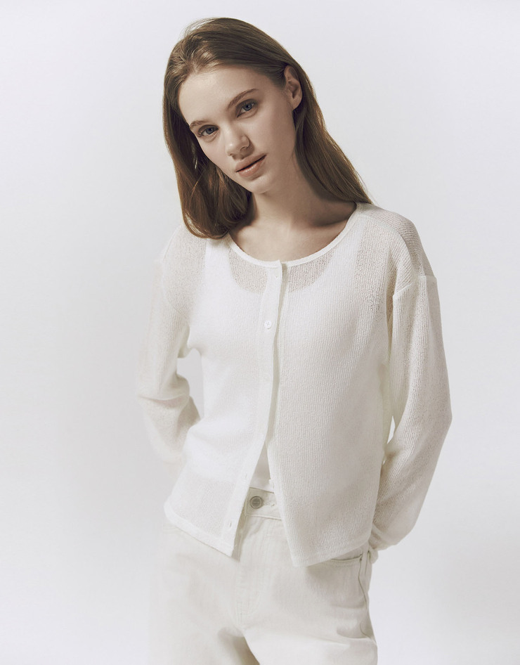 여름부터 간절기까지 유용하게 착용할 수 있는 스타일리시한 시어 가디건입니다.