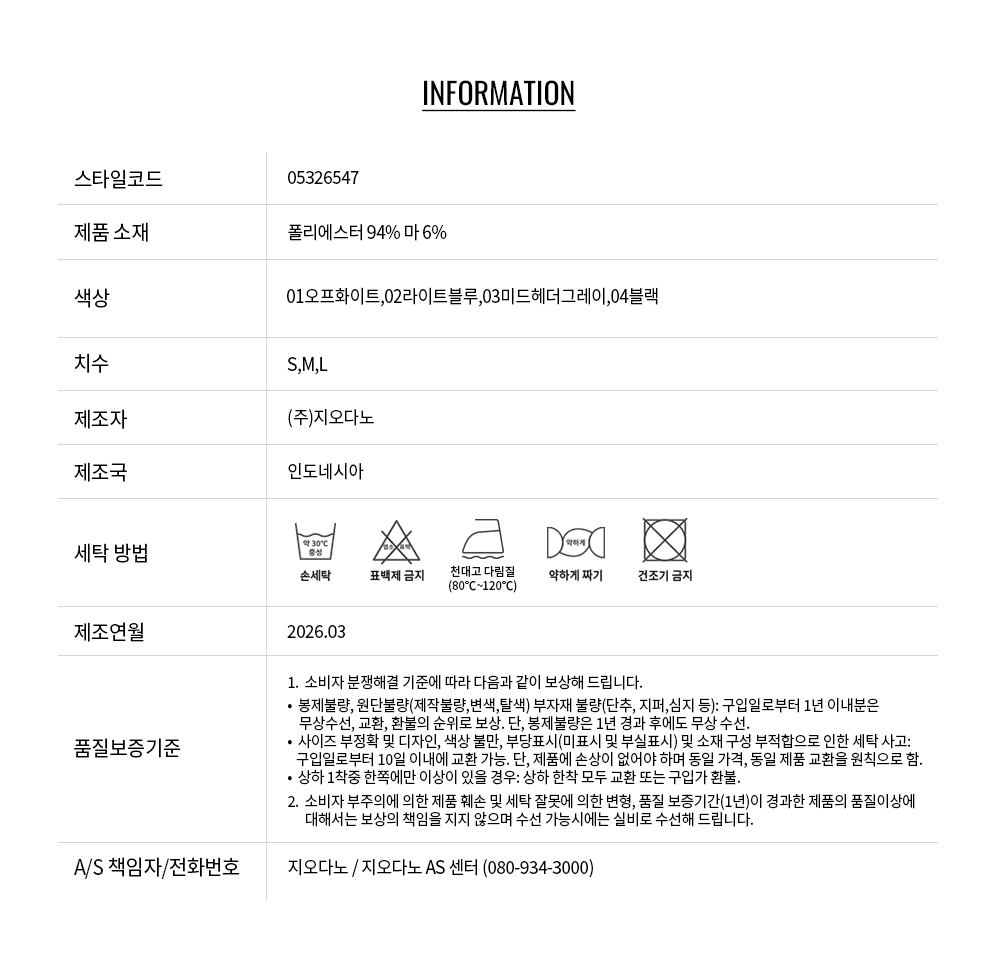 • 교환 진행시 배송비 5,000원 주문자 성함으로 입금 부탁드립니다(신한은행:267-05-028523 (주)지오다노)