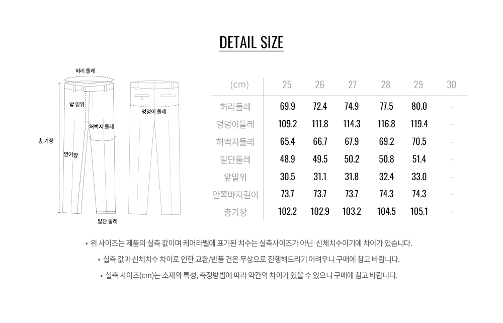 **데님 원단 특성 상 컬러 별로 상세 스펙 차이가 있을 수 있습니다.