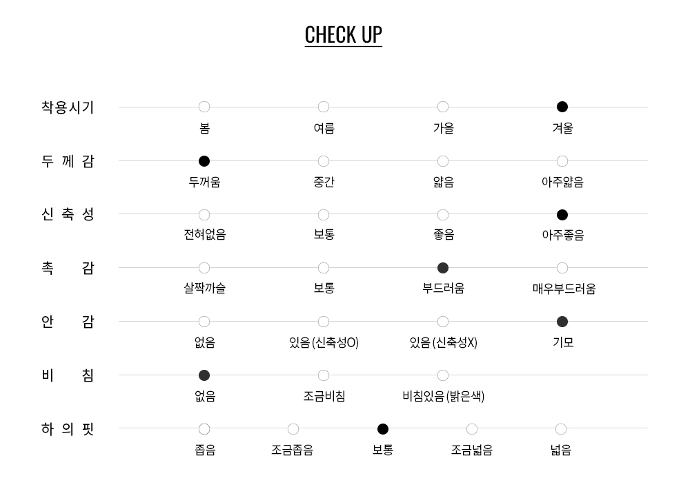 겨울 시즌 다양한 상의와 매치해 데일리룩부터 세미 포멀룩까지 폭넓은 스타일링이 가능합니다.