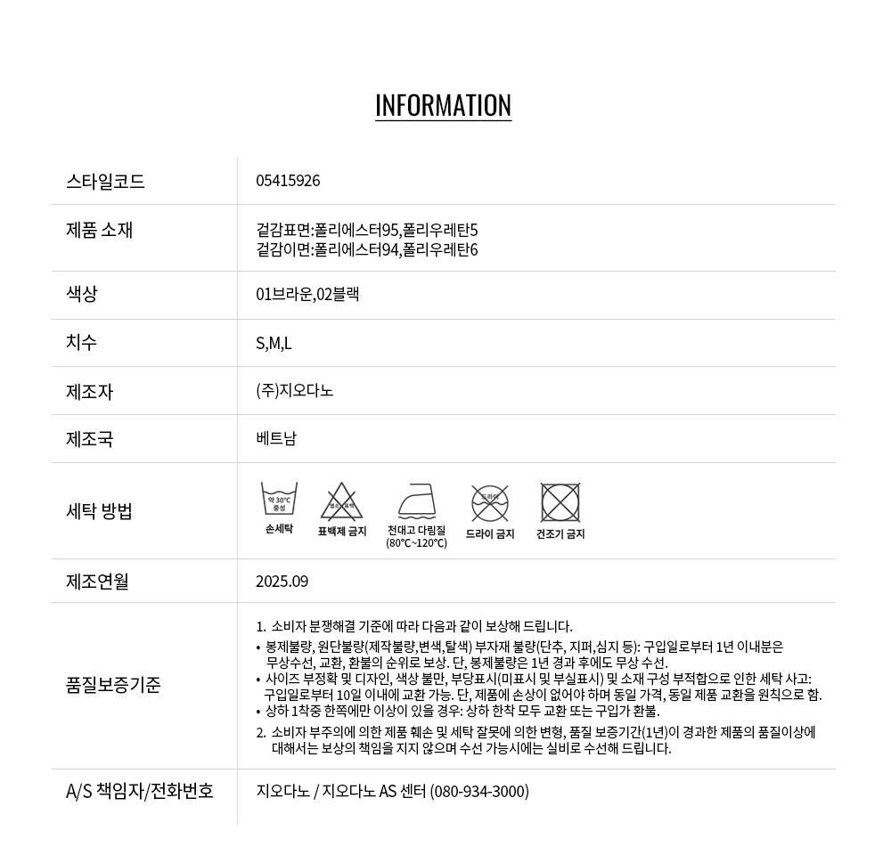 • 교환 진행시 배송비 5,000원 주문자 성함으로 입금 부탁드립니다(신한은행:267-05-028523 (주)지오다노)