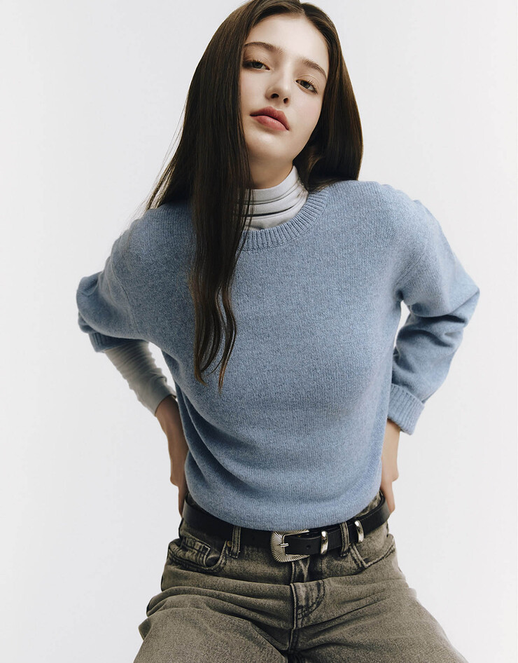 7GG 파인 메리노울 100% 크루넥 스웨터입니다