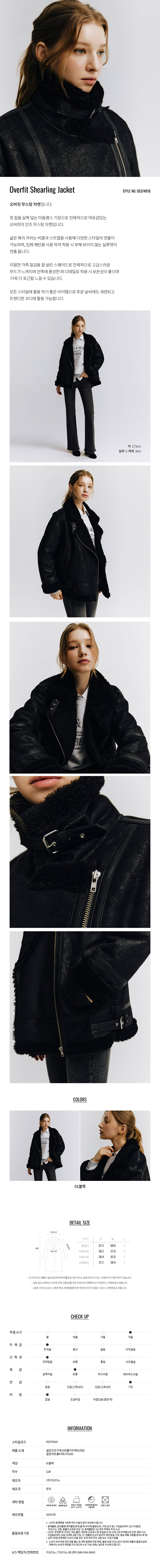 윗 힙을 살짝 덮는 미들랭스 기장으로 전체적으로 여유감있는 오버핏의 인조 무스탕 자켓 입니다.