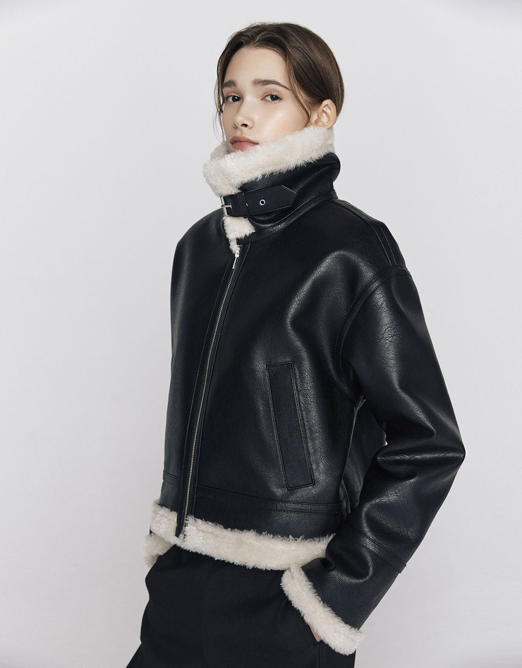 세련된 겨울 스타일링을 완성해 줄 오버핏 숏 기장 무스탕 자켓입니다.