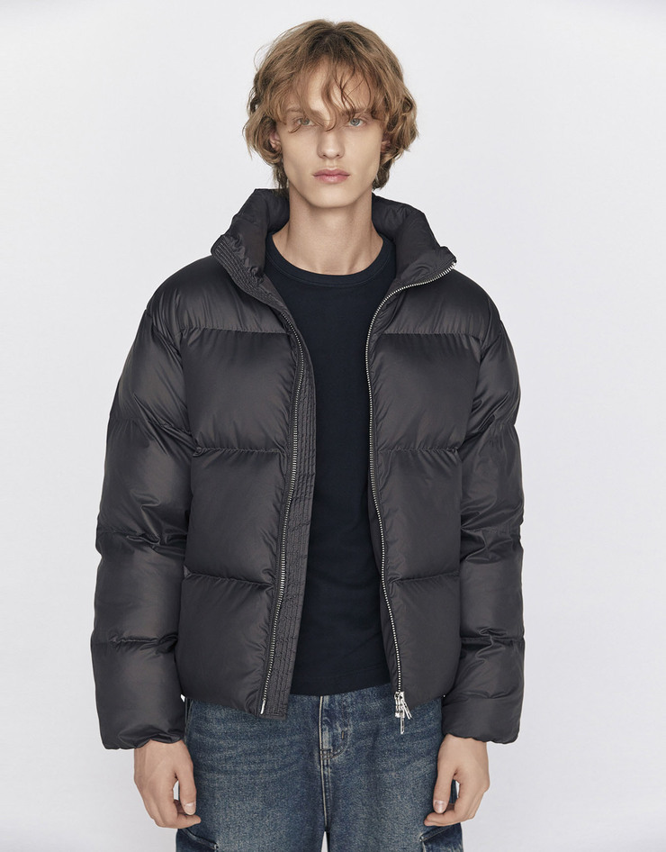 숏한 기장감의 적당히 여유로운 핏의 트렌디한 폴리 목넥 패딩 푸퍼 자켓입니다.