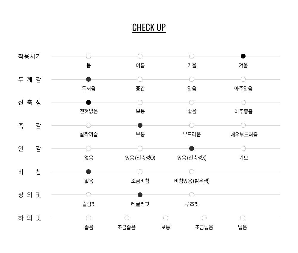 적당한 높이의 목넥 디자인으로 지퍼를 끝까지 올려 목을 포근하게 감싸주어 찬 바람으로부터 따뜻하게 보호합니다. 전면에는 내구성이 뛰어난 YKK 메탈 샤이니 2WAY 지퍼를 적용해 완성도를 높였으며, 상황에 따라 다양한 실루엣 연출이 가능합니다. 양쪽의 웰트 포켓과 내부 인포켓은 실용적인 수납공간을 제공하고, 소매 안쪽에는 이밴드를 더해 바람 유입을 차단하여 보온성을 강화했으며, 밑단의 스트링과 스토퍼는 필요에 따라 실루엣을 자유롭게 조절할 수 있습니다.