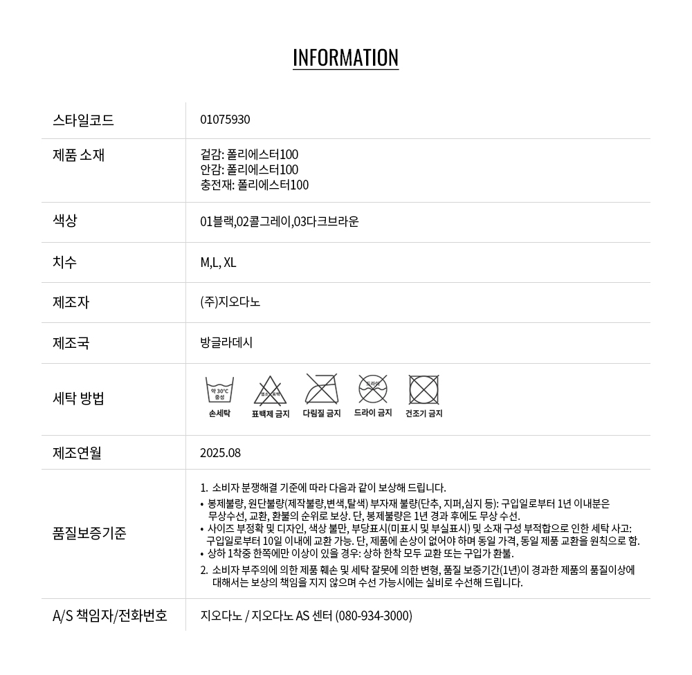 • 교환 진행시 배송비 5,000원 주문자 성함으로 입금 부탁드립니다(신한은행:267-05-028523 (주)지오다노)