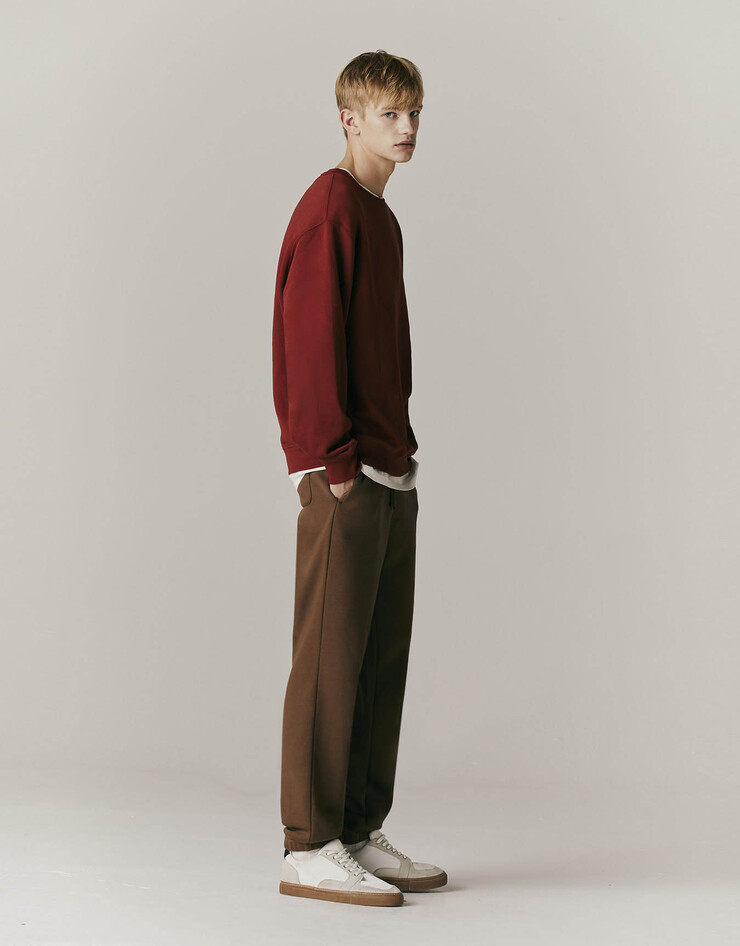 편안하면서도 따뜻한 브러쉬드 테리 소재의 조거 팬츠입니다.