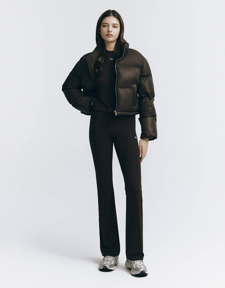 다리가 길어 보이는 부츠컷 핏에 편안한 허리 밴드와 허리 부분이 말리지 않도록 곡선의 입체 패턴으로 제작하였습니다. 허리 밴드 안쪽에는 히든 미니 포켓이 있어 간단한 소지품을 보관하기 편리합니다.