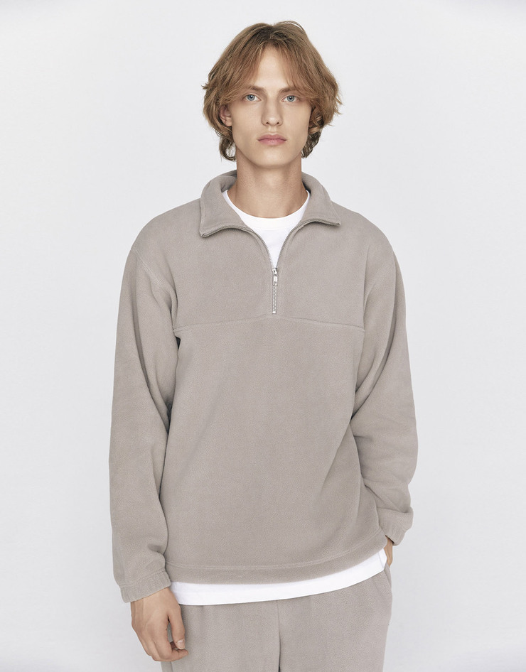 하프 집업 디자인을 적용하여 체온 조절과 스타일링의 변화를 동시에 제공합니다. 넥라인은 하이넥 구조로 되어 있어 보온성을 강화하고, 지퍼 슬라이드에는 미니멀한 마감 처리를 더해 안정감을 주었습니다. 밑단과 소매는 탄탄한 립으로 마감되어 착용 시 변형을 방지하고, 전체적으로 완성도 있는 제품입니다.