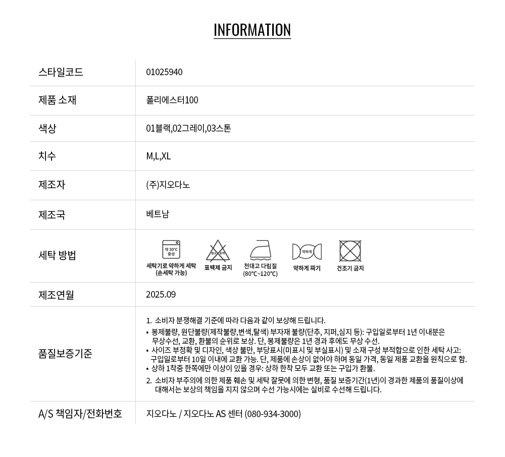 • 교환 진행시 배송비 5,000원 주문자 성함으로 입금 부탁드립니다(신한은행:267-05-028523 (주)지오다노)