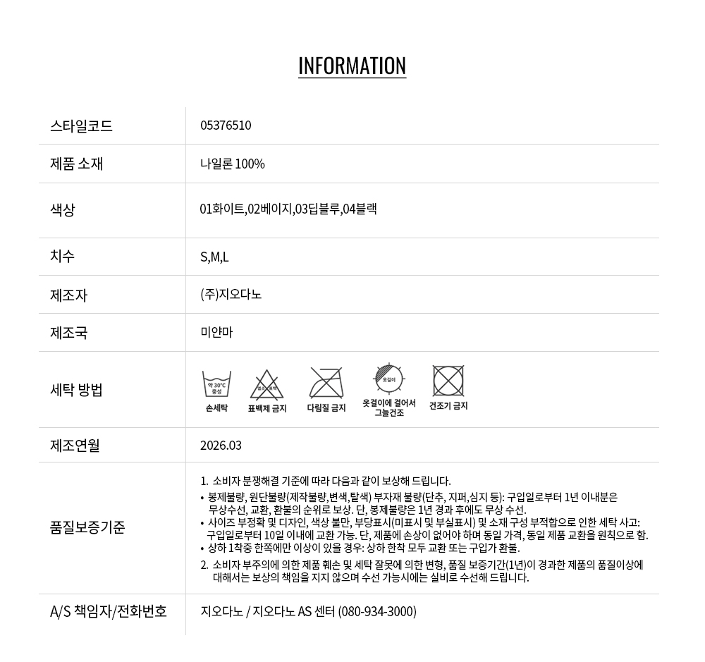 ※ 나일론 소재 특성상 고온 다림질은 피해주세요.