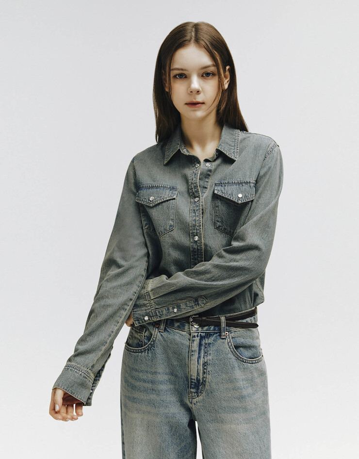 데님 셔츠 특유의 빈티지한 무드를 연출해줍니다.