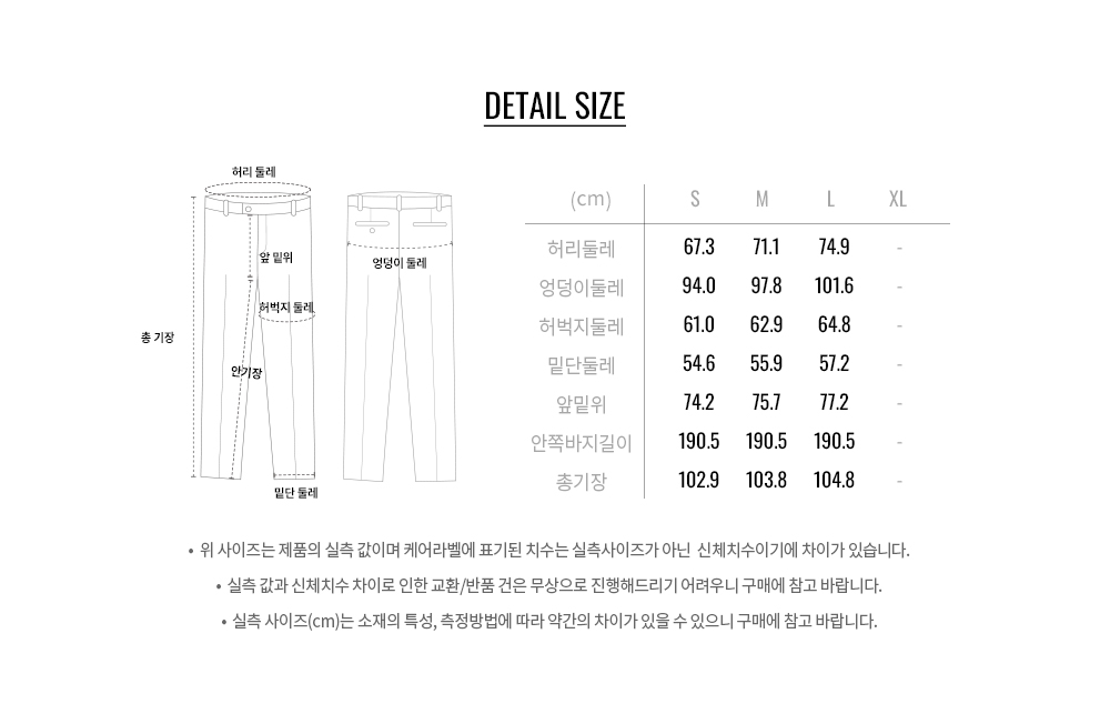 스트레이트 핏 실루엣으로 체형에 구애받지 않고 다리가 길어 보입니다.