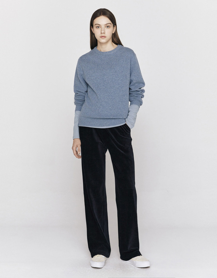 380g/㎡(480g/yd²) 중량의 폴리 코튼 스판 원단에 두께감 있는 골이 돋보이는 코듀로이 원단을 사용하여, 은은한 광택감과 따뜻하고 포근한 착용감을 제공합니다.