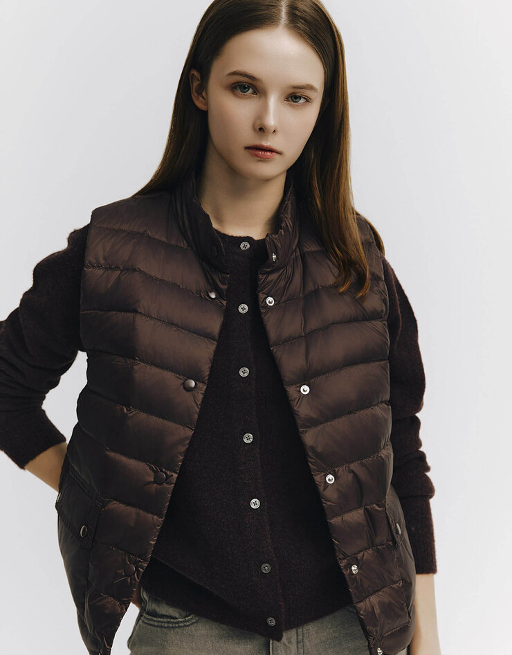 밀착력과 보온성이 우수하고 가볍습니다. 브라이트 원사가 가미된 나일론 고밀도 원단 사용으로 전체적으로 겉면에 은은한 광택감이 흘러 고급스러움을 느낄 수 있으며, 원단 안쪽면에 WR 다운 프루프 가공과 함께 고밀도 다운백을 이중으로 덧대어 깃털 빠짐을 최소화 하였습니다.
