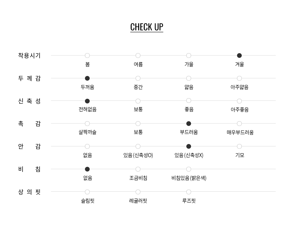 겨울철 극한 추위에도 안정적인 보온성을 유지하며, 다양한 하의 및 이너와 매치해 감각적이고 스타일리시한 윈터 아우터룩을 완성할 수 있습니다.