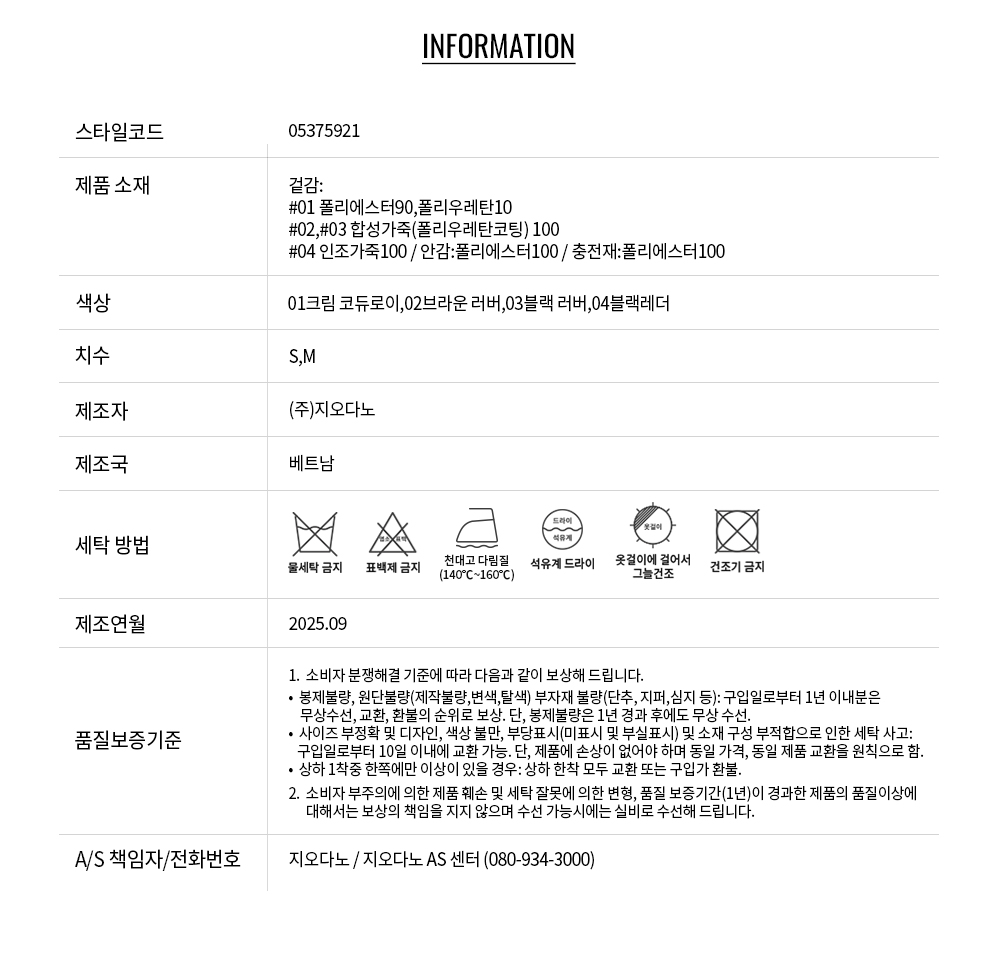 • 교환 진행시 배송비 5,000원 주문자 성함으로 입금 부탁드립니다(신한은행:267-05-028523 (주)지오다노)