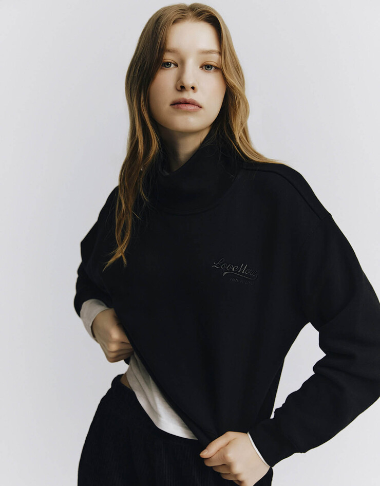 여자 기모 목넥 크롭 맨투맨