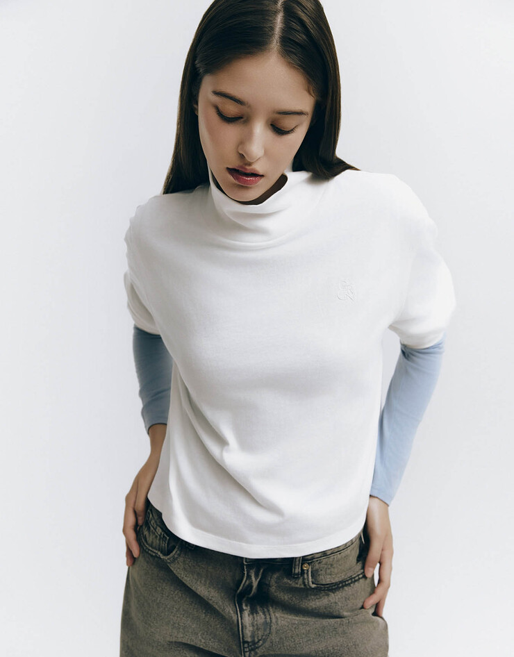 지오다노에서 새롭게 선보이는 크롭 터틀넥 티셔츠입니다.