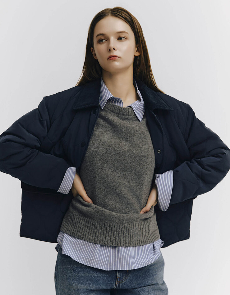 코듀로이 카라 어니언 퀼팅 자켓 입니다..