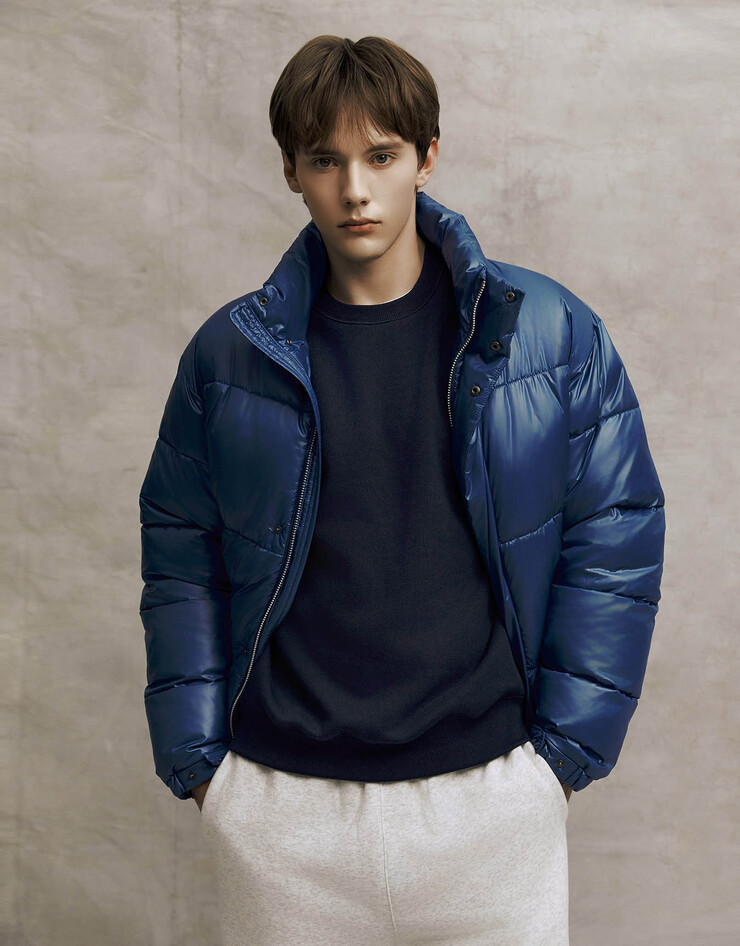 소맷단의 비죠 디테일과 밑단에 내장된 스트링과 스토퍼는 찬 공기의 유입을 차단시켜줌과 동시에 실루엣을 원하는 대로 조절할 수 있습니다. 솔리드 컬러 외에 하이그로시 블루 컬러를 추가했습니다.