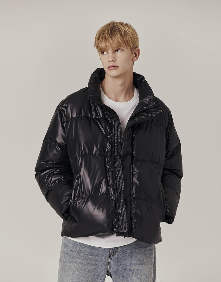 고급스러운 광택의 하이그로시 목넥 숏 푸파입니다.