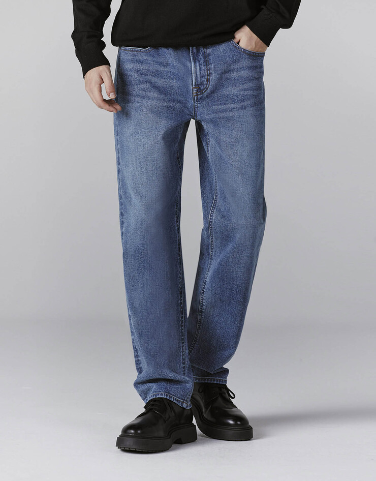 코튼 스판 소재에 기모를 긁은 스탠다드 슬림 핏 데님 팬츠입니다.