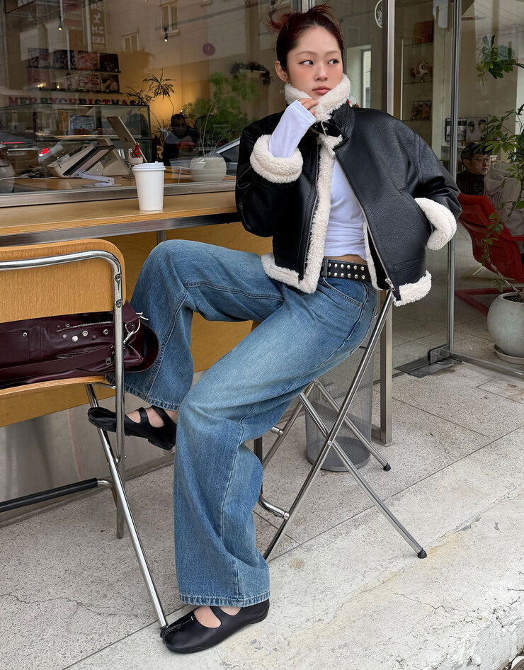 힙부터 허벅지, 밑단까지 여유 있게 떨어지는 와이드 실루엣으로,
