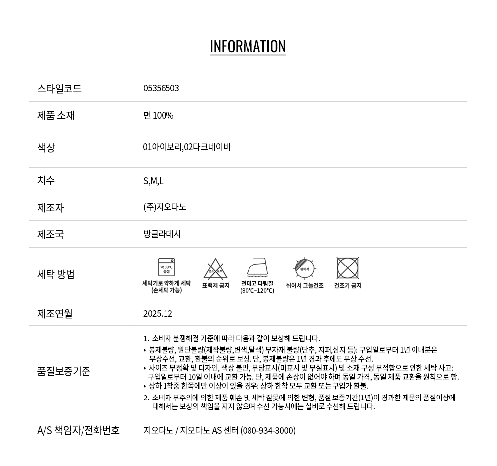 • 교환 진행시 배송비 5,000원 주문자 성함으로 입금 부탁드립니다(신한은행:267-05-028523 (주)지오다노)