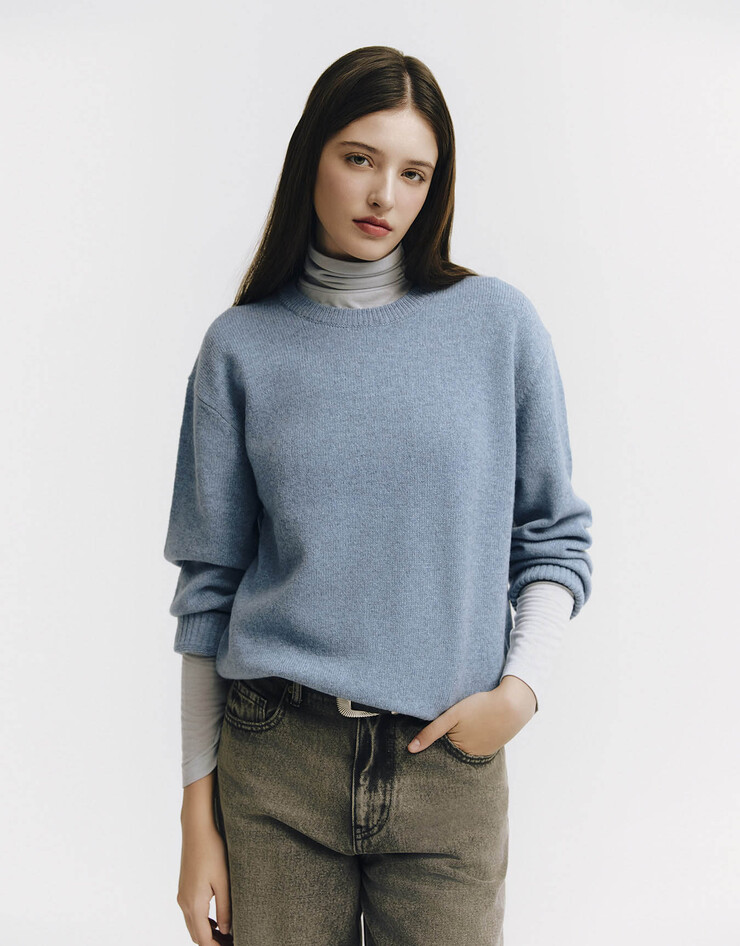 7GG 파인 메리노울 100% 크루넥 스웨터입니다
