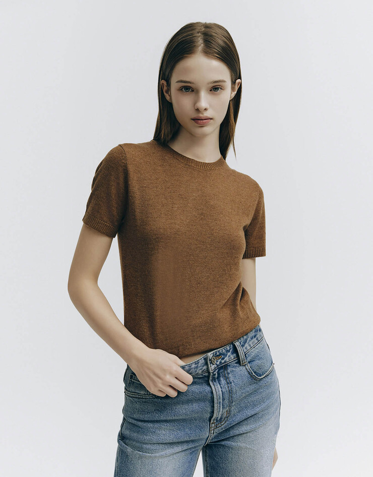 클래식한 크루넥 디자인의 기본 핏 스웨터로