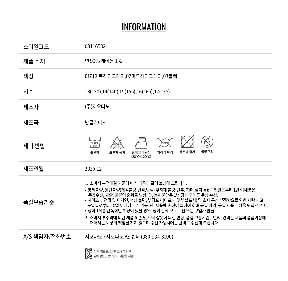 베이직한 3가지의 컬러로 구성하여, 03026501 테리 맨투맨, 03026502 테리 후드, 0306503 테리후드집업, 03026504 테리목넥집업과 함께 세트로 코디가 가능합니다.