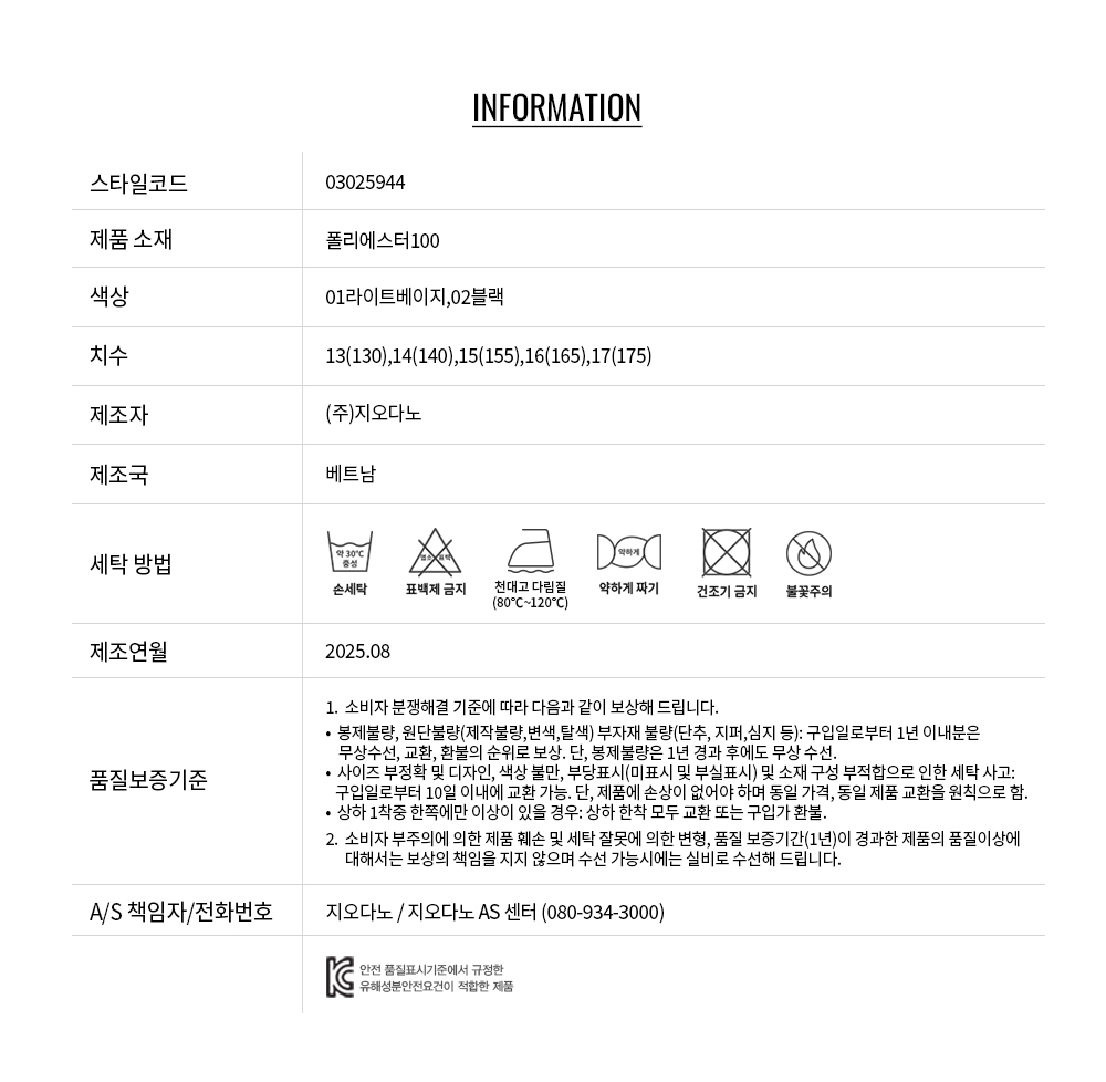• 교환 진행시 배송비 5,000원 주문자 성함으로 입금 부탁드립니다(신한은행:267-05-028523 (주)지오다노)